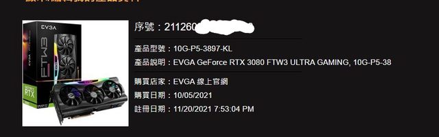 型號: EVGA RTX3080 FTW3 10G