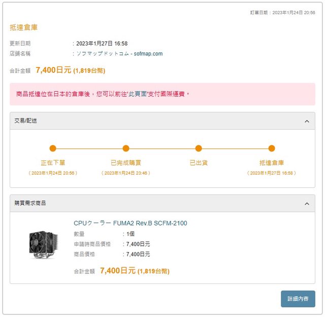 台灣斷貨後找代購從日本3C商城購入,到貨後僅拆封檢查