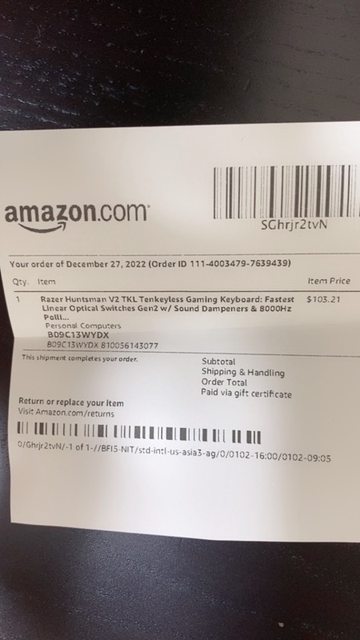 2. 2022/11/04 於蝦皮 Razer雷蛇電競館購買滑鼠時的贈品