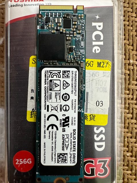標題[賣/全國/皆可] 東芝 XG3 SSD 256GB M2 PCIE