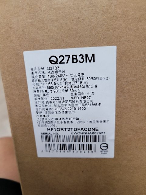 ◎硬體型號: AOC Q27B3M