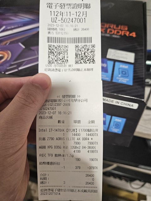 CPU、主機板、RAM還有直立顯卡跟發光線是2023年12月原價屋購入