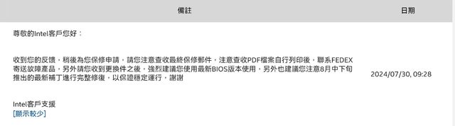 3.使用狀況:於今日2024/8/12 RMA回來,僅檢查序號正確