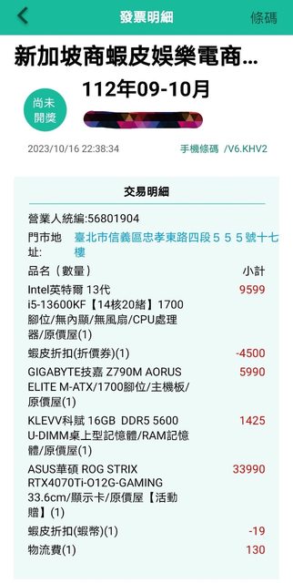 購買後會提供發票. 購買證明. RMA相關截圖