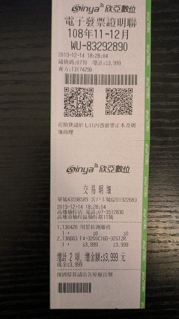 2.2019/12/09於MOMO購入已過保,電源鍵有些許掉漆,盒裝配件完整。