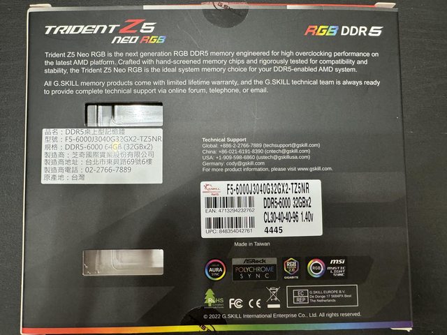 標題[賣/台中/皆可] 芝奇 焰鋒戟32GB*2 DDR5 6000