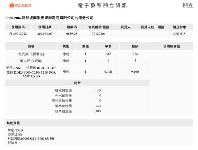 ◎硬體型號: 芝奇 焰鋒戟32GB*2 DDR5 6000 CL30