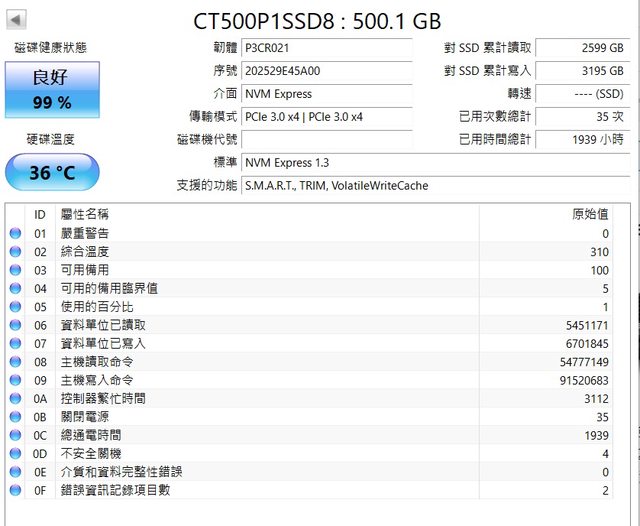 1.美光 P1 M.2 2280 500GB