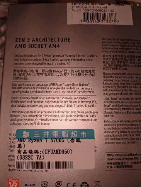 標題[賣/台北/面交] AMD R7 5700G