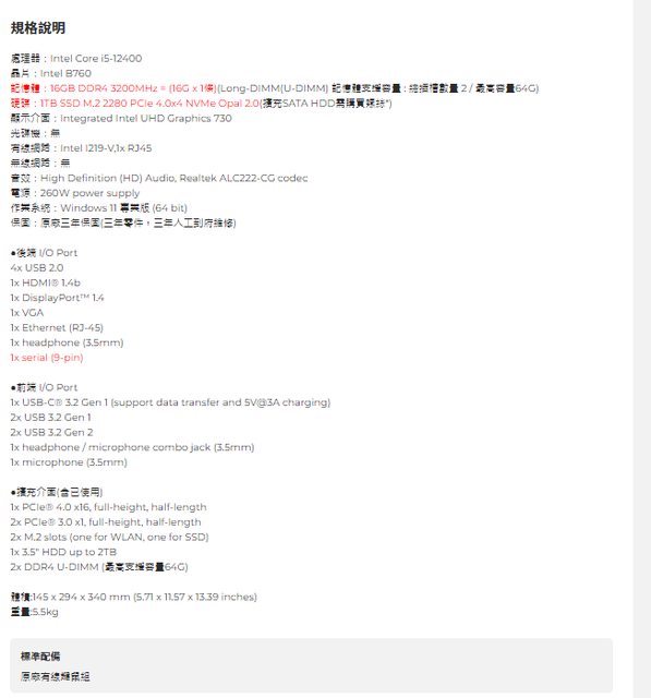(2) 原廠保固:3年。請參閱相關原廠保固資料,像是桌機有「三年零件,三年人