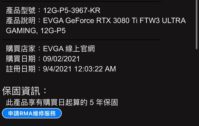 標題[賣/台中/皆可]EVGA 3080ti FTW3 Ultra