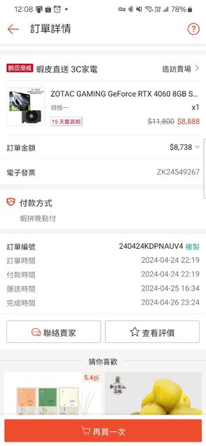 標題[賣/台北/皆可] ZOTAC RTX 4060 8GB SOLO