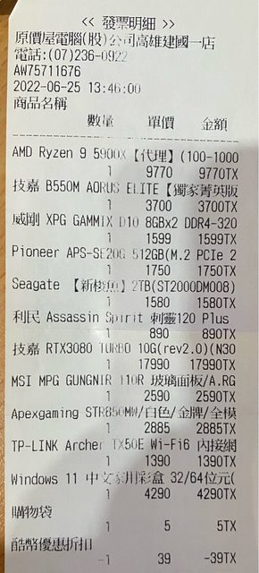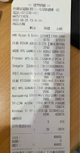 2.2022年6月25日原價屋購入MSI MPG GUNGNIR 110R機殼拆下,使用正常