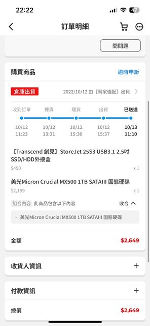 SSD是22年10月買的 還有一年