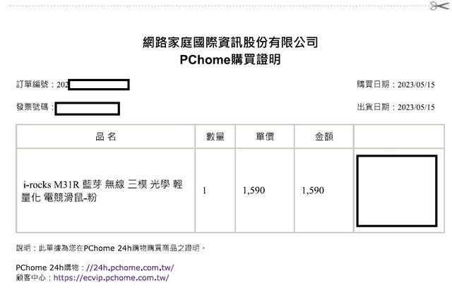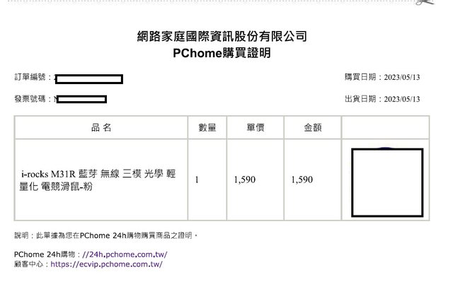 會給PCHOME購買證明。2023年5月購買,此款兩年保固,尚在保固內售出不退,已做簡