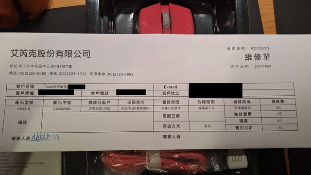 A. 盒裝配件全部完整,會給購買證明,其中一隻送修過(滾輪),送修單有個資不提供,