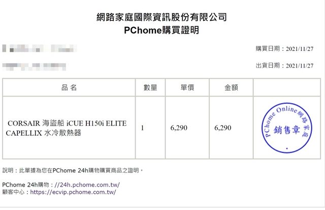 1.原Corsair iCUE h150i elite capellix 舊版 2021/11/27 pchome購入