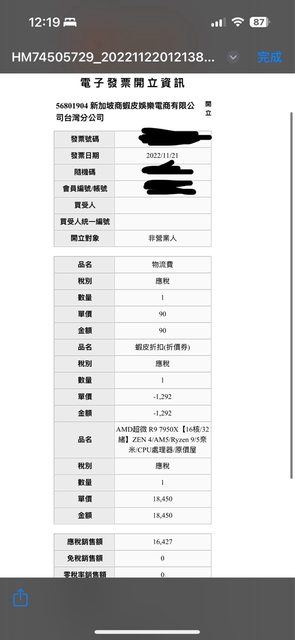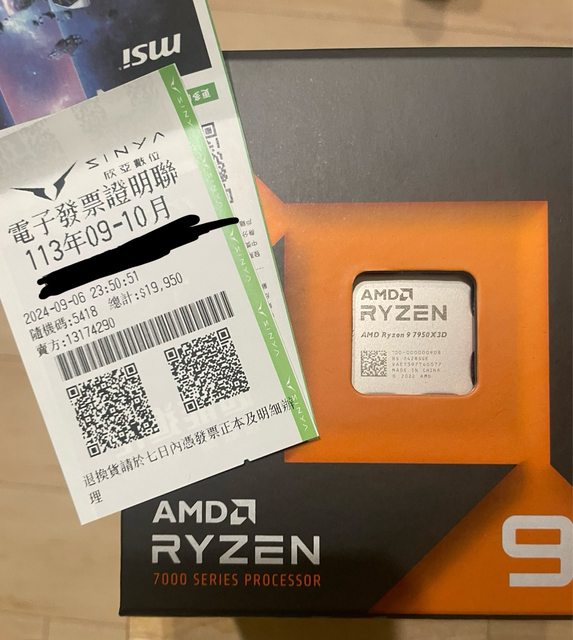 1.2024/9/6購入,沒搶到9950X的時候暫用的。