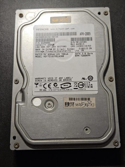 3. 日立 7200轉 250G