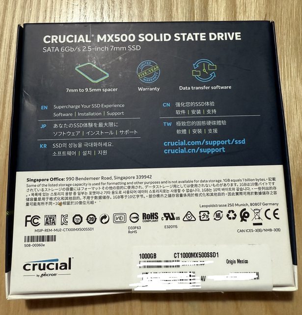 1. 美光 Micron MX500 1TB SATA 台灣公司貨