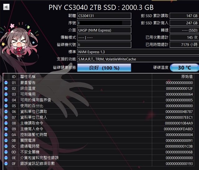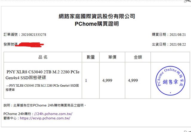 ◎硬體型號: PNY XLR8 CS3040 2TB M.2 2280 PCIe Gen4x4 SSD