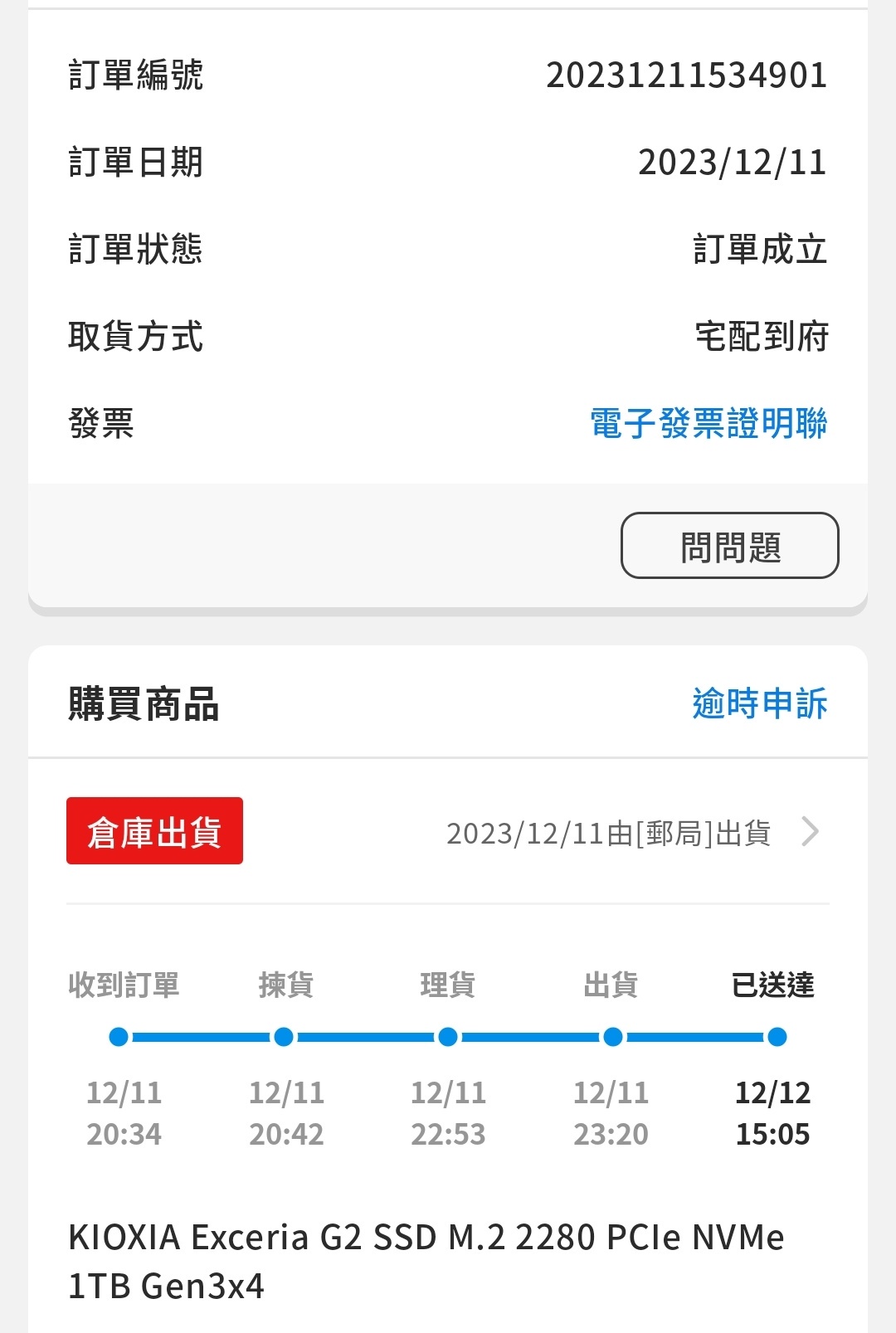 ◎硬體型號: Kioxia G2 1T SSD