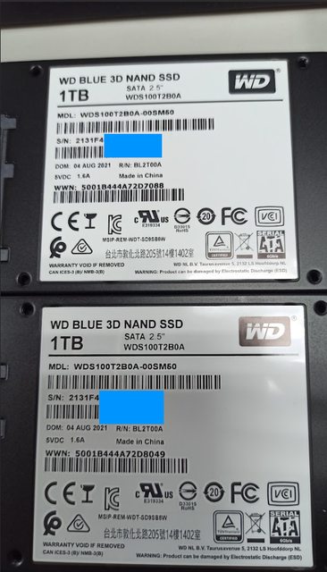 ◎硬體型號: WD Blue 3D SSD 1TB SATA (WDS100T2B0A) x 2