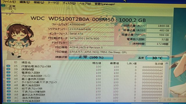 健康度 100% 使用時數約172 小時
