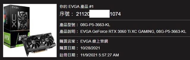 2021/10 購自EVGA官網 無挖過 僅玩電玩
