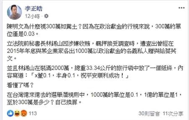 就一直打陳明文的高鐵300萬!