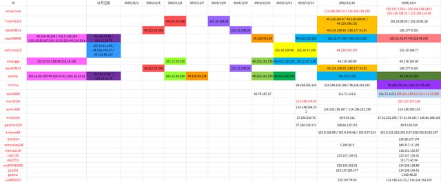 填滿顏色是IP重疊狀況,如果有找不到配對色的就是我沒貼上來