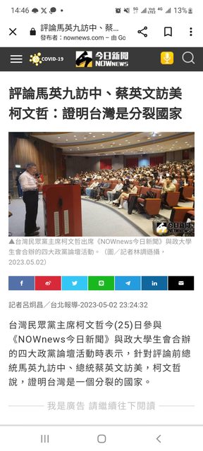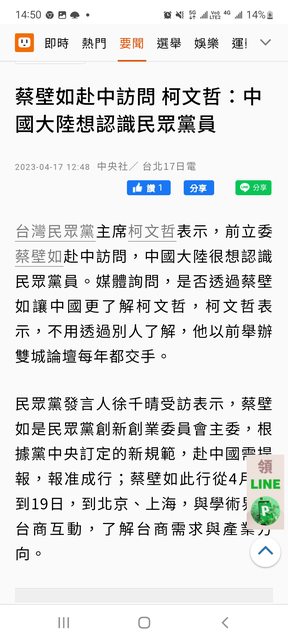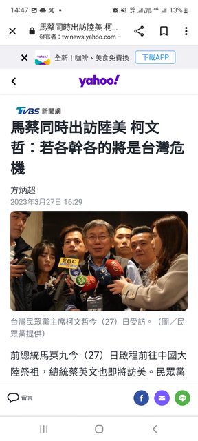 標題Re: [新聞] 夏立言赴陸挨批 柯文哲:重點是被台灣
