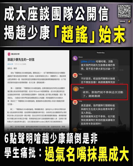 ben811018: 學生會都出來重重打臉了 趙還在硬拗 42.78.211.0 12/19 15:50