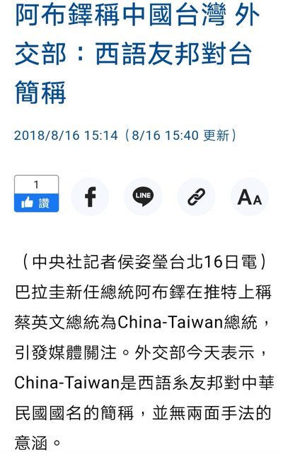 標題Re: [討論] 中華民國台灣 少2字 中國台灣 也ok呀