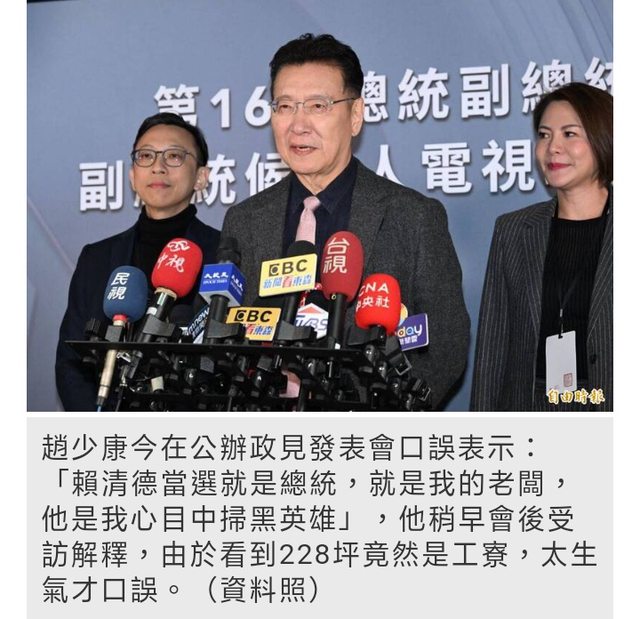 掃黑英雄,是他的總統,是最好的新北市市長,最好的總統。趙少康也坦言口誤不好,自己