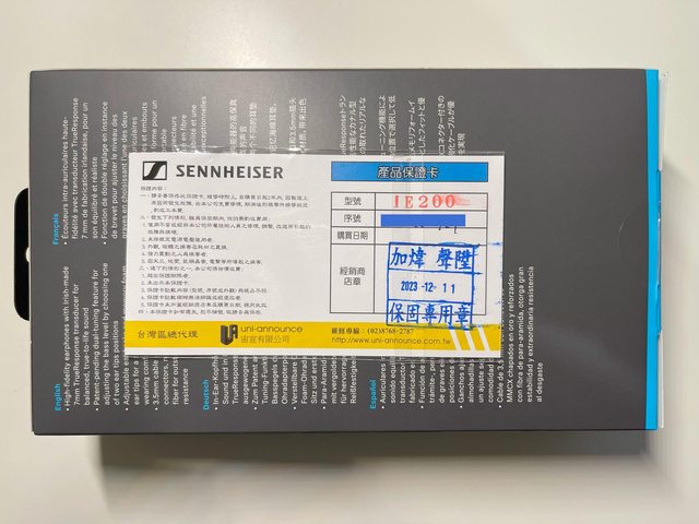 1.產品型號:Sennheiser IE200