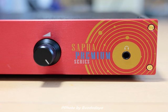 右邊是6.3mm耳機孔 寫著產品名跟圍繞著輸出孔的同心圓設計感不錯