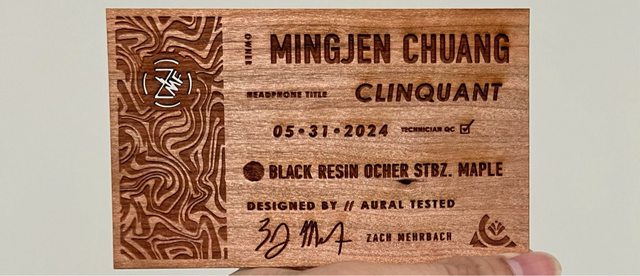 木片保證卡,我覺得ZMF穩定木的木片保證卡特別厚,雕花特別漂亮,字也刻得特別清楚
