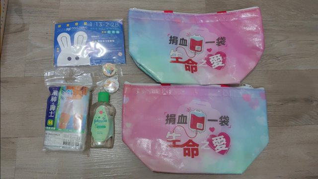 5.捐血袋?2、免洗內褲M號、屏東燈節兔子燈、嬌生嬰兒潤膚油(期限2024/09/06)
