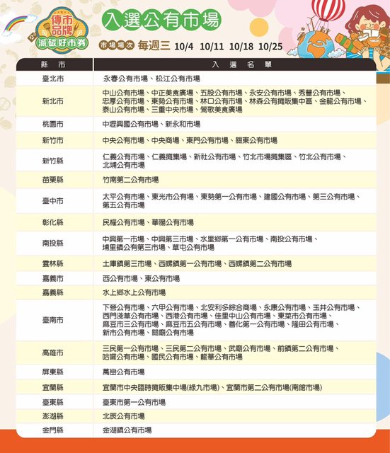 夜市)參與活動,預計時間傳統市場在10月份每週三 (10/4、10/11、10/18、10/25),列