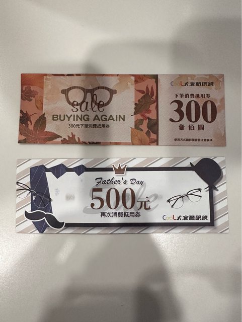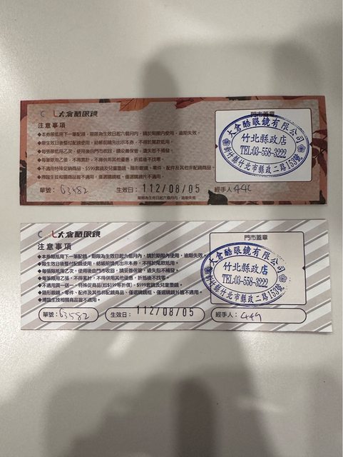 物品項目:眼鏡折價券兩張