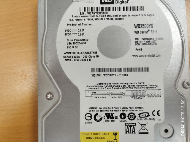 3. SATA WD 250G