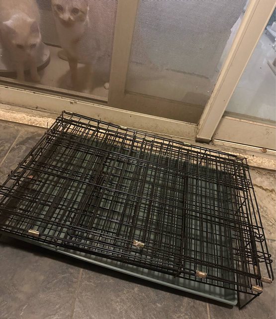 隔離籠是領養小橘的時候暫時隔離買的,後來就一直放陽台,下方銀色鐵有部分生鏽需注