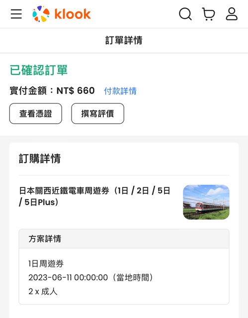 1. 讓售品項:關西近鐵1日券 2人