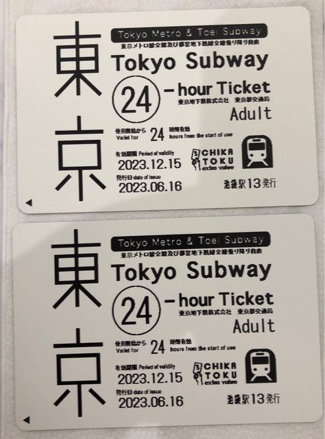 標題[讓售] 東京地鐵24小時通票兩張