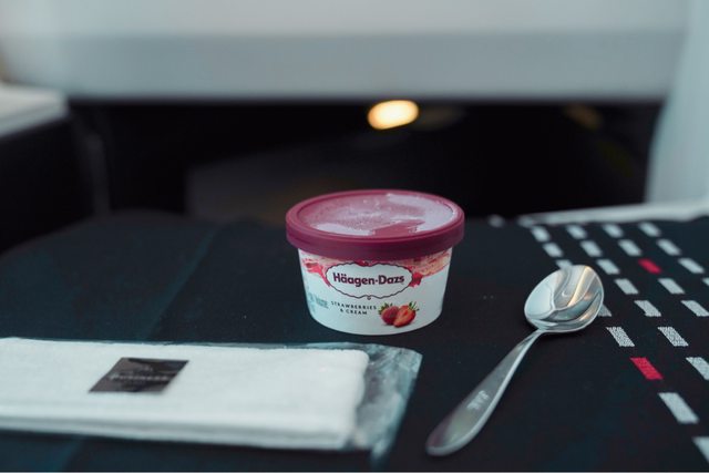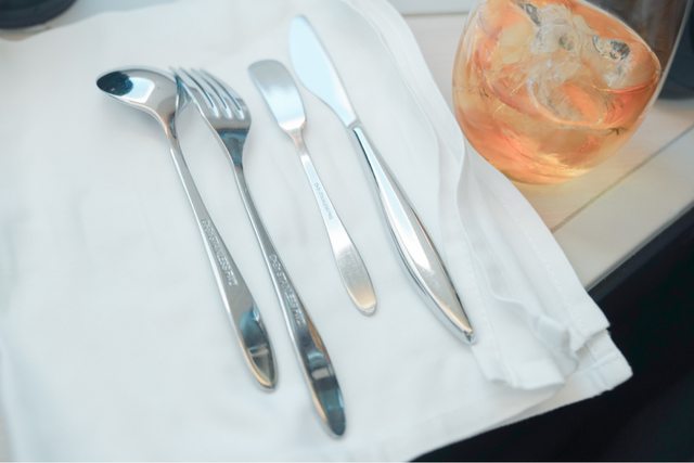 空姐會在餐桌上鋪上餐巾以及餐具