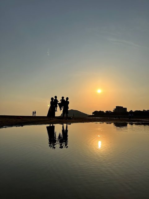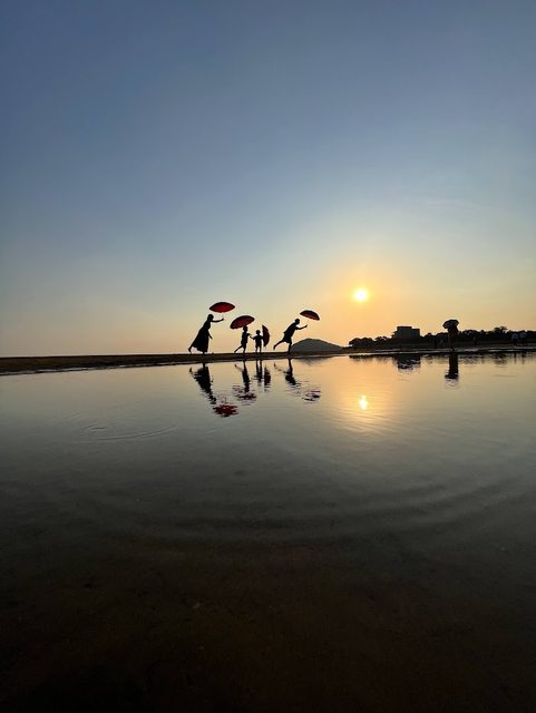 這邊的重頭戲就是等乾潮和日落時刻重疊,太陽快下山時會映在水裡。