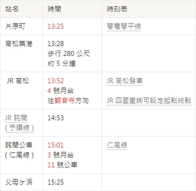 JR 四國路線查詢: