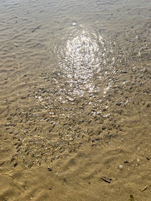 到處都看的到沙蟹往沙裡面鑽,也有很多小魚在水灘裡面游。