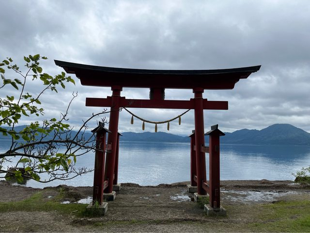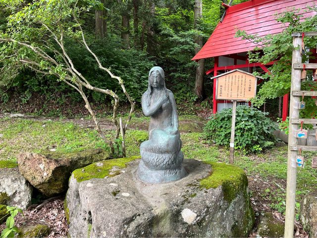 潟尻,可以看辰子像(童話故事中,飲用湖水化身為龍的女孩)及浮木神社。11:15抵達